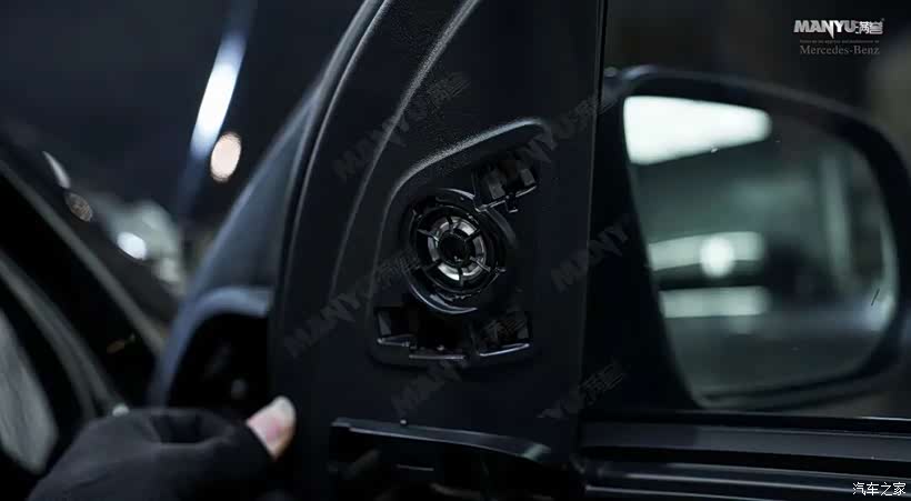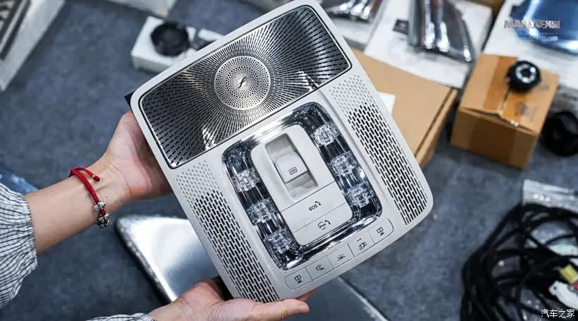 ▲ 顶棚喇叭安装位需要人工开孔,原厂预留位开孔,原厂位安装,无缝安装。