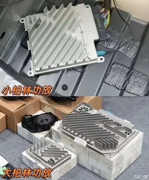 3、功放不一样原车小柏林是590瓦小功放,大柏林是1610瓦双功放