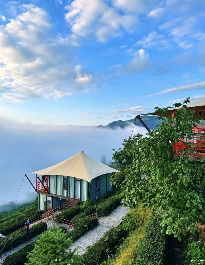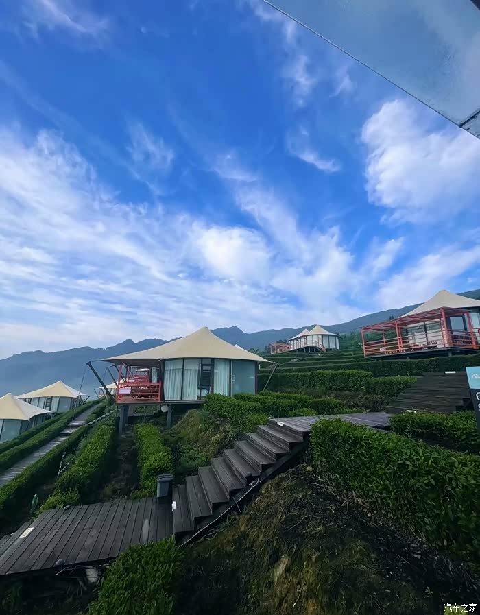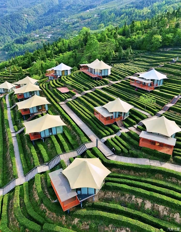 关于环境,这里海拔千米,一座座小木屋坐落在茶园间,三面落 地窗,一眼望去就是茶园+山景,风景真的很美, 夏 天温度舒适甸避暑 。