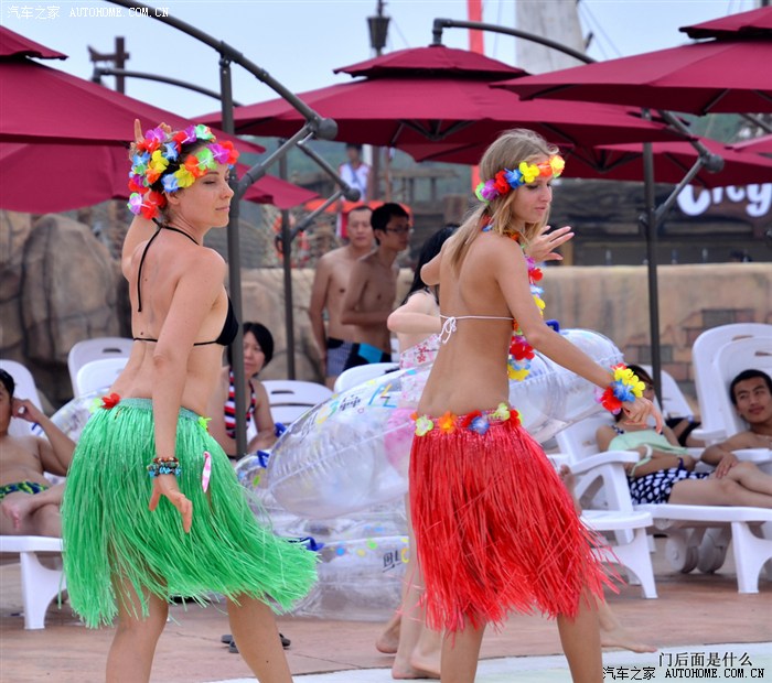 露天泳池边的表演,你们以为哥是被这两个卡通吸引过来的,那你们就完全不了解哥了。