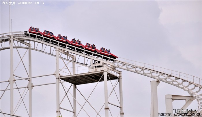 哥依然不屑地看着老婆孩子上了疯狂老鼠。