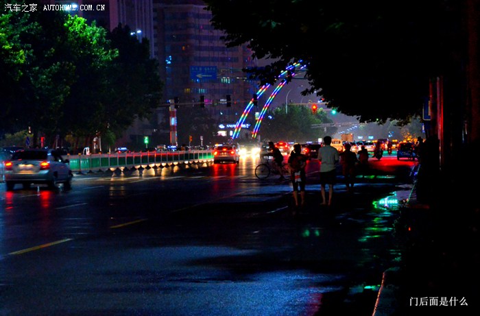 华灯初上,湿地映射得满街炫彩。