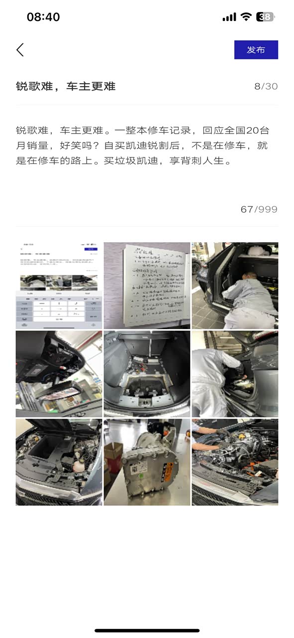 劝退,劝离。一整本修车记录,回答了上市两年后全国月销1台的疑问,好笑吗?自买凯迪锐割后,不是在修车,就是在修车的路上。买垃圾凯迪,享背刺人生。