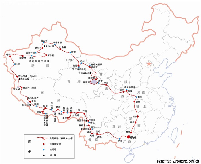 这次行程单骑两人,一共耗时35天,途经广西、贵州、云南、西藏、新疆、甘肃、青海、陕西、河南、湖北、湖南11个省,经历滇藏线、川藏线,新藏线,进墨脱,上珠峰,闯阿里无人区,跨天山,跨祁连山……完成环行西部的旅程。