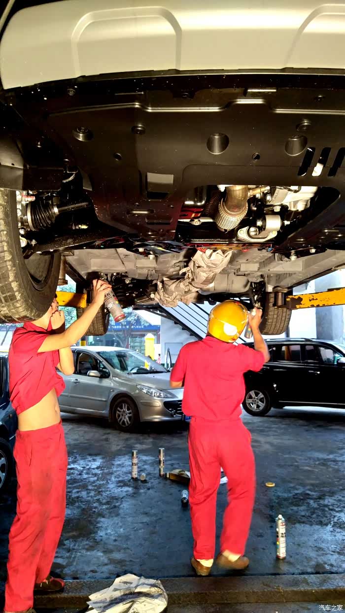 7、底盘装甲:我原来那车6年前都是出厂就全涂了,长安汽车公司我觉得节约成本也不应该在这上面抠门,这个东西搞了以后有几个方面的好处:隔音、防锈、防刮,这几项可能延长车子的使用寿命的。
