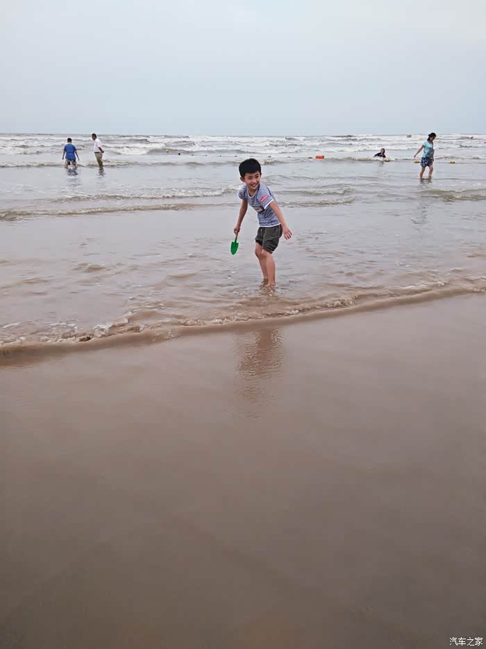孩第一次见到大海,看她玩的好不陌生,看到这么开心,我这个月没有奖金也知足