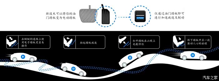 什么是OnePedal?驾驶员只通过油门踏板来实现车辆的起步、加减速、停车和驻车,全过程无需踩制动踏板,就可以轻松驾驭车辆。