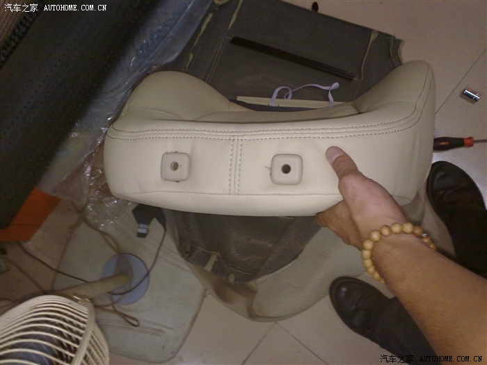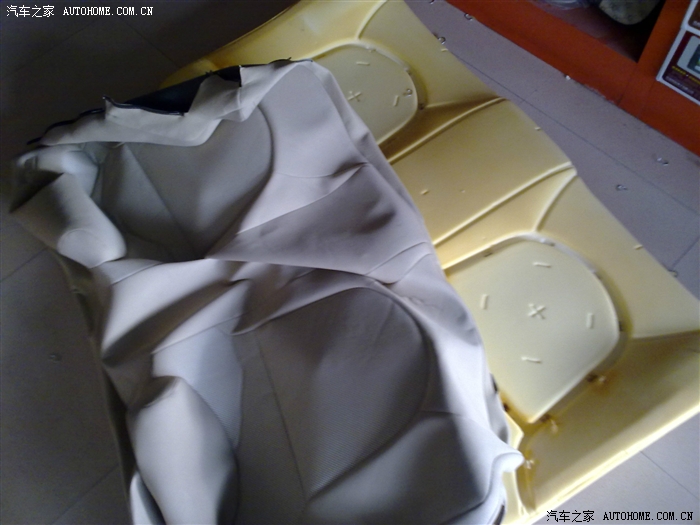 后排座位已经安装好。(耗时多少没去计算)有些皱皱的,是因为还没拍打摸顺。后排的靠位也拆解下来了,装好在拍打摸顺。