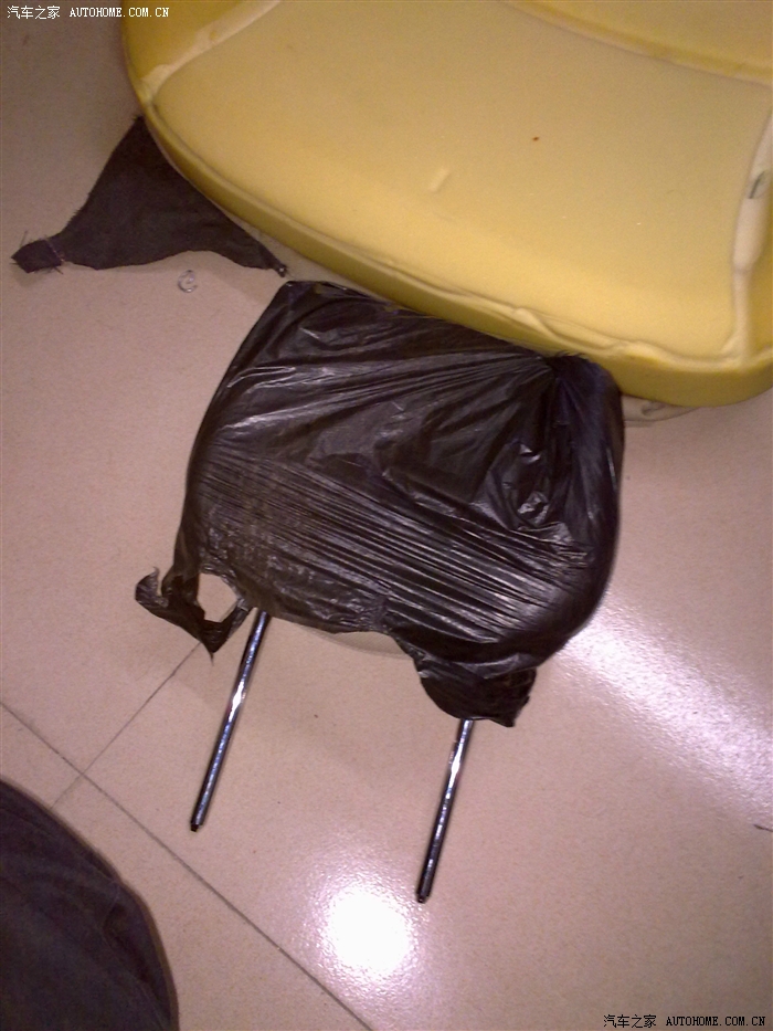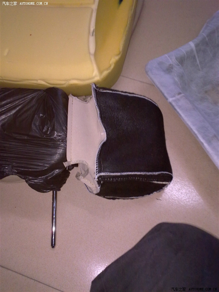 答案是:头枕这里没U形钉,无需拆解。为了皮套容易套进去就得先套个塑料袋在套皮头枕。(滑好多,省力)