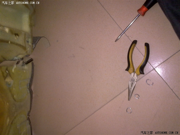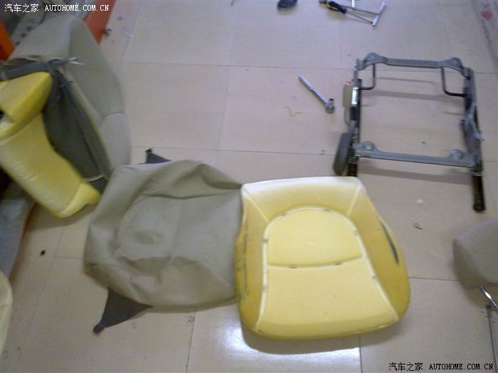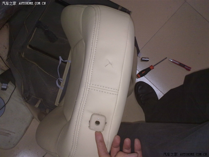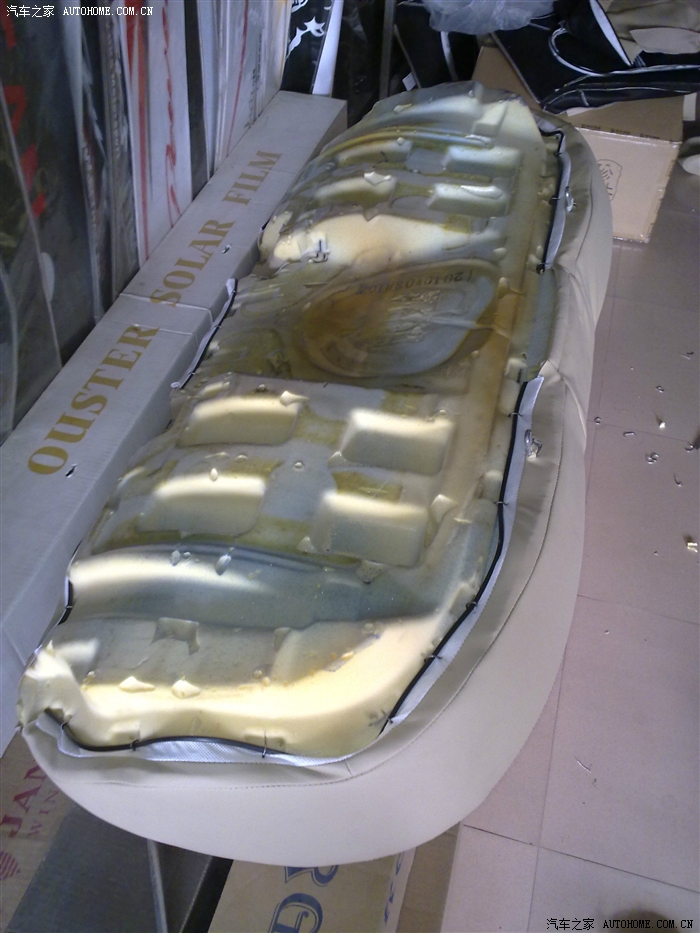 要把原车的织布面料上的固定U型钉一个个撬掉(不止外围一圈,里面还有)我们拆到最后的驾驶位时已经不再一个个撬掉了。直接用美工刀割破织布面料。建议想自己动手的车友,开始时还是一个个的撬掉。