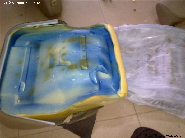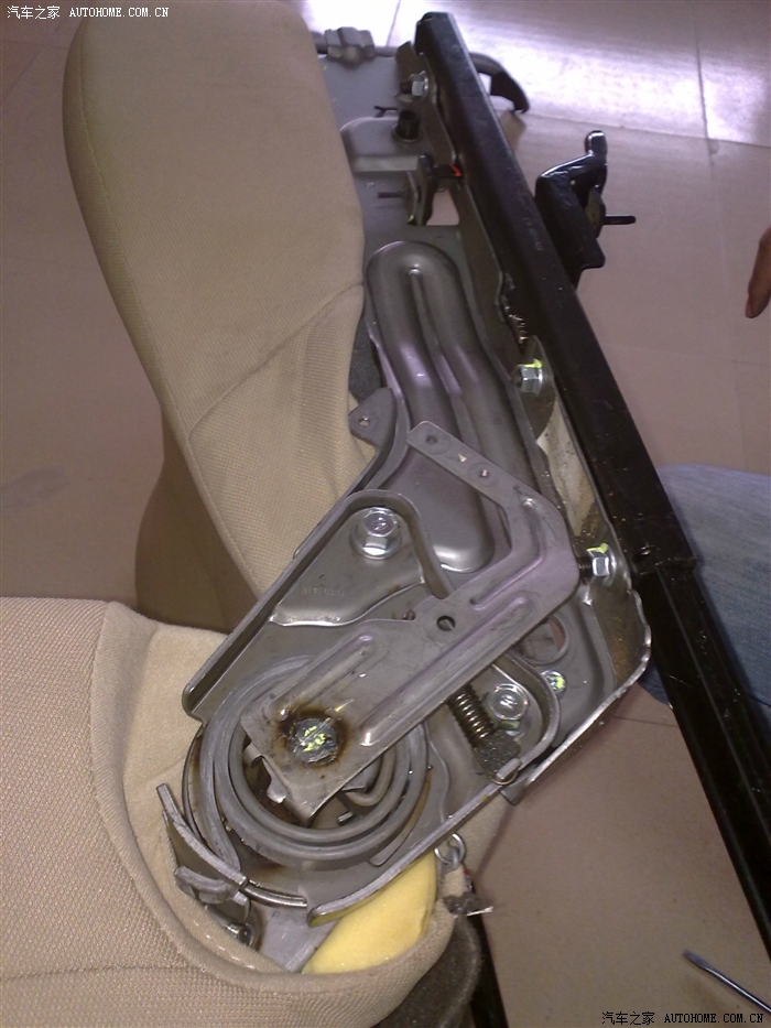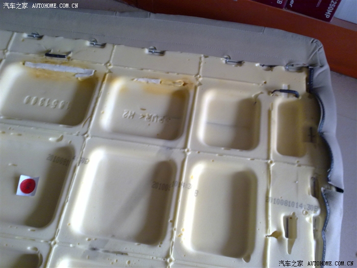 拆开的座位。海绵底下的铁。包着一张油纸(防锈??)拆这出来要放开4个螺丝。