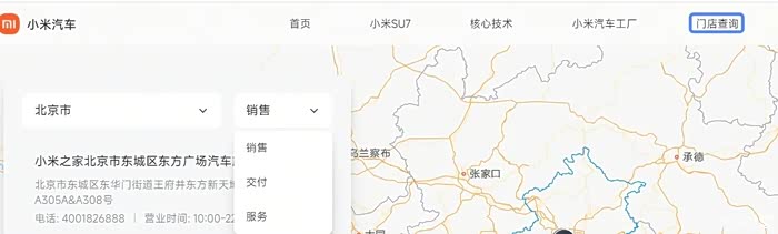 也可通过百度、高德地图查询所在城市的小米汽车门店,从门店命名方式即可区别门店类型: