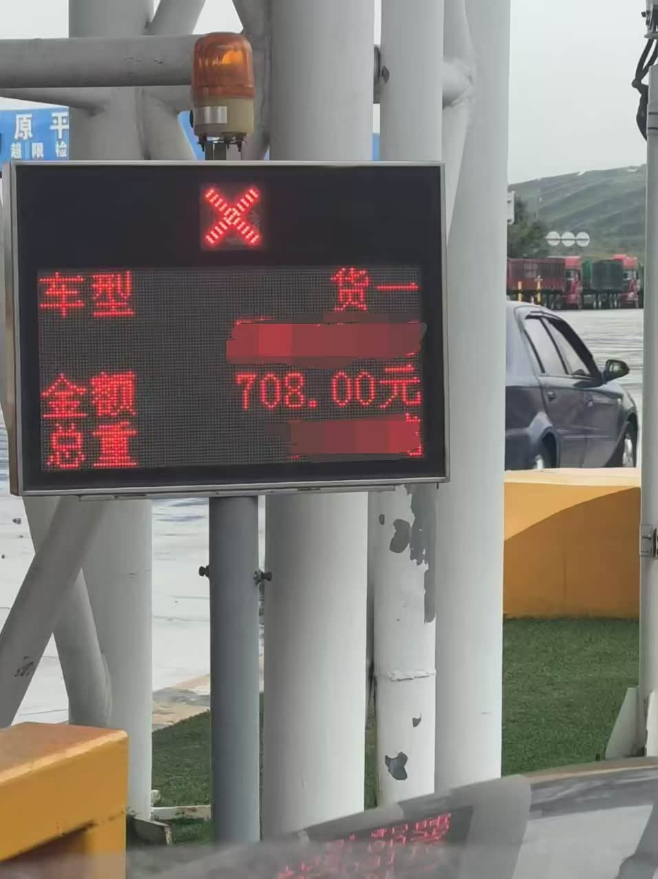 这是回来路上在山西下了一次高速,显示高速费708,省了。我把路上省的高速费算了一下,共计省了3500块钱高速费。皮卡能装又能省,这波不亏。