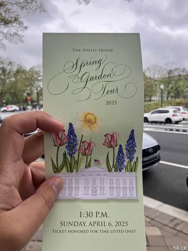 开车进华府后首先去东门的游客中心排队领取门票🎟️,这次由于一些原因原定开两天的活动只开半天。所以门票比较抢手,好在拿到了下午头半小时的门票。虽然东门外安检队伍很长,好在特勤局效率很高,不到半小时就进去了~~