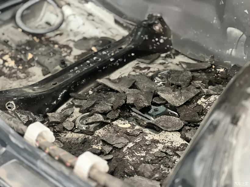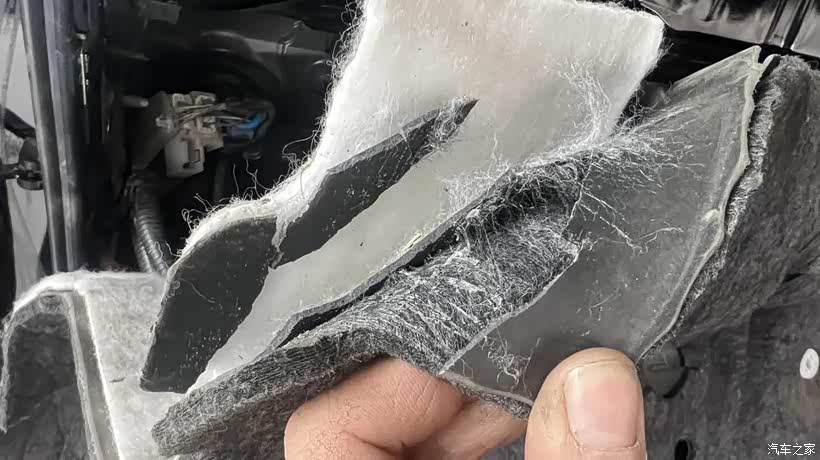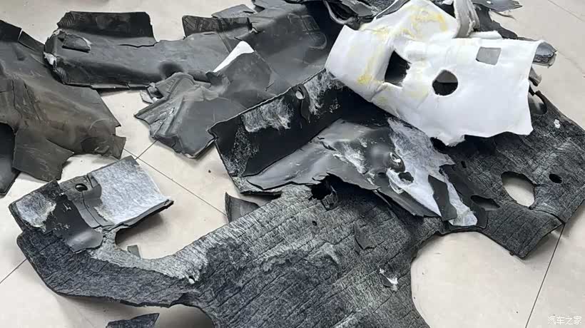 那么这台车的异味根源在哪里?那就是上图我所清理下来的这些物质。它的主要作用就是内饰的隔音和止震,这么重要的车身结构,厂家却疏忽了时间问题。
