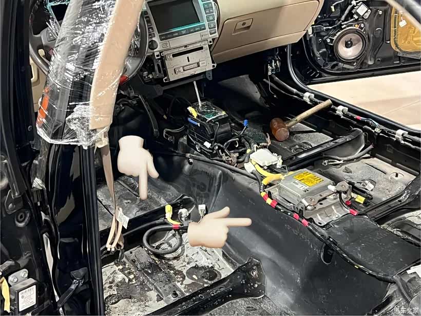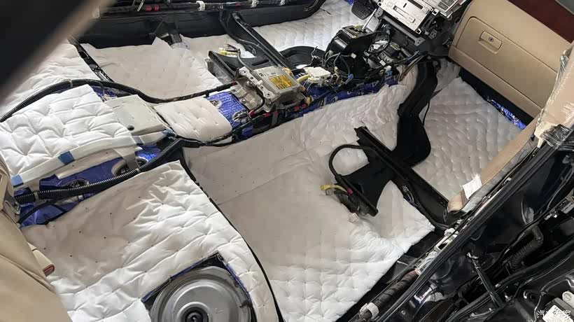 整个地板、马鞍包括仪表台后面的防火墙都是这样的物质,所以这个施工难度可想而知