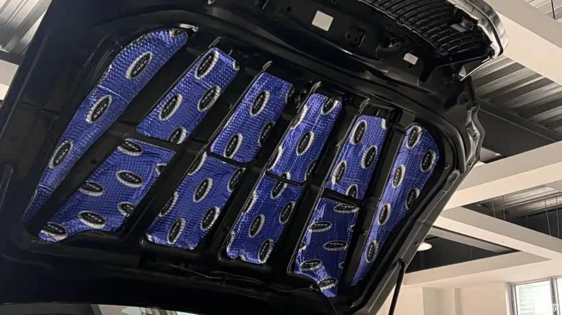 在止震板的上面粘贴的是隔音棉,尤其防火墙这块一定不能含糊,不然后期发动机的声音会让你更加烦恼。