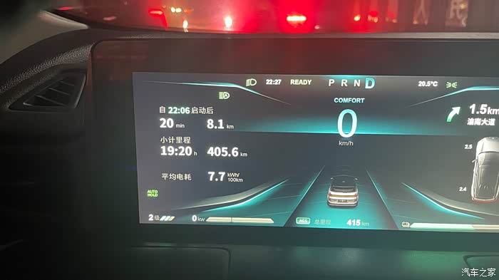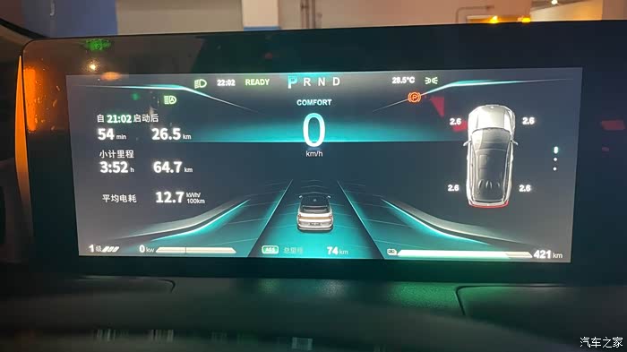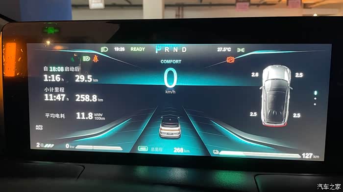 6点46启动,续航490KM,停车之后,实际里程表显剩余269KM,算了一下 行程164.6KM,实际消耗 490-269=221KM,算了一下大约7.5折 (今天全程未开空调 开了天窗 比较凉快)