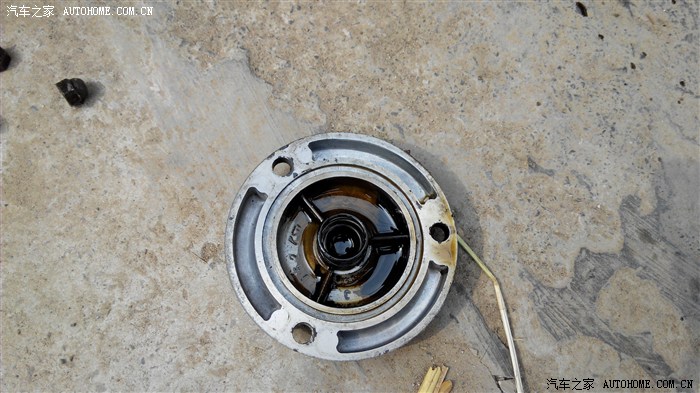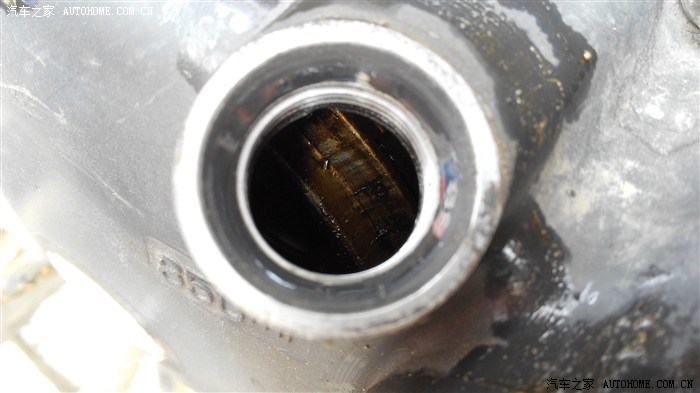 旧的滤芯特写,黑色的机油夹杂着杂质。