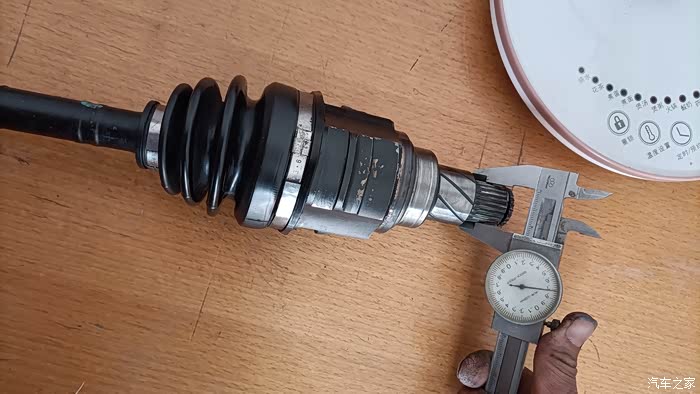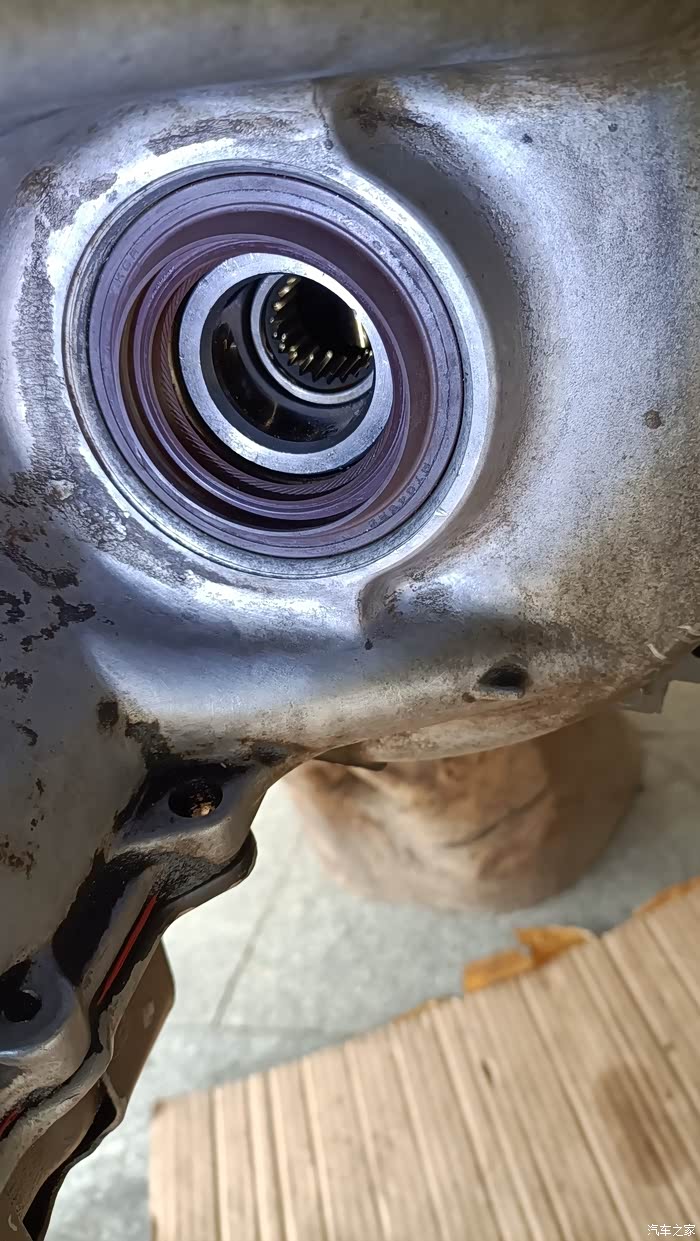 左半轴上的圆痕,就是油封唇口,换新油封要往里深入1mm错过该位置,注:由于油封没有定位槽紧挨输出大轴承,新装油封最多在原来位置往里进1MM,过多将可能碰到轴承。