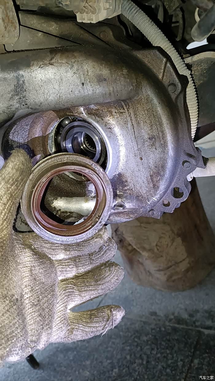 拆旧油封要讲究技巧,先往一边用工具打深再撬另一边就轻松取下的,拆下的旧油封感觉弹性仍好未发硬。