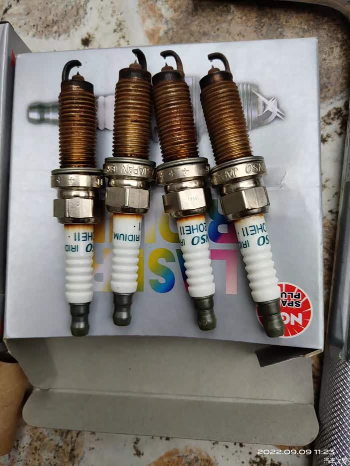 14款的,使用手册上载明火花塞是十万公里更换。今年618在小黄鱼上买的了四根NGK的,价格是正常的一半左右吧,但是到手看了是上海产的。以前在网上查说原车是NGK的,结果拆下来是电装的。可能车的批次不同,装车件也不一样。换的时候打算如果这火花塞有问题就双11去官方旗舰店买来换了它。提前买了火花塞套筒和扭力扳手,正好在荒山野岭闲着无事就自己动手换了。旧的换下来也没扔,留在车上备用。