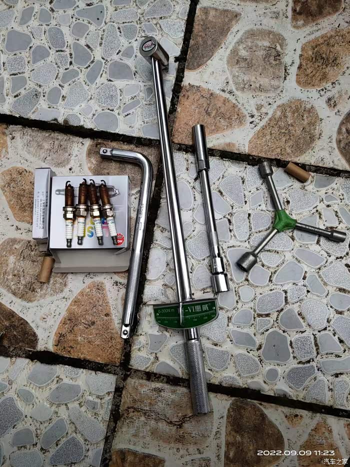 工具和换下来的旧火花塞。