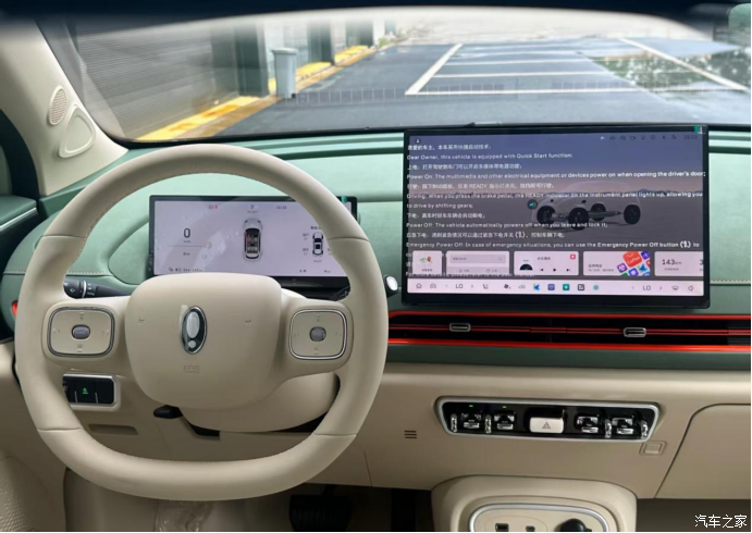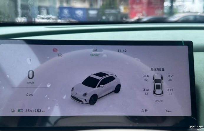 小屏幕显示的也蛮丰富的,车辆续航、胎压胎温还有驾驶模式等,一目了然,还听销售说有个啥AR实景指引功能,遇到复杂路口,仪表盘会有箭头指到真实路况画面,就像游戏里的人物指引一样,听着倒是蛮高级的,不过这个功能要顶配才有,哈哈~
