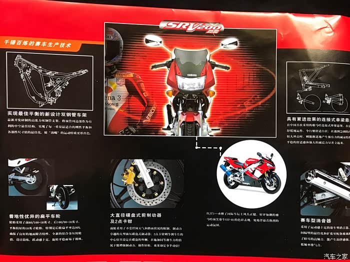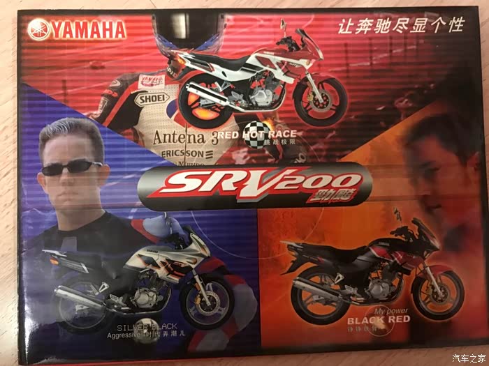 但在2001年头那时另一台神车出现了,SRV200劲飚,运动“跑车”,动力更强劲,三联赛车仪表,中央后减震,YZF-R1赛车配色,当然价格更贵,售价23800元。那时曾像父亲提过,能不能换买这台...得到的答复也是意料之中,本来同意买台1w多的合资摩托已经算西边出太阳的事了。所以这个梦一直藏在心底...