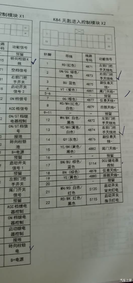 确定天线在无钥匙进入模块(PEPS)X2线束2号针角和13号针脚 应存在接触不良 两个针脚塞入点铜丝进去后重新插回插头 目前天线按钮正常