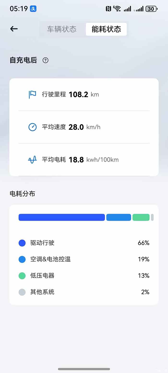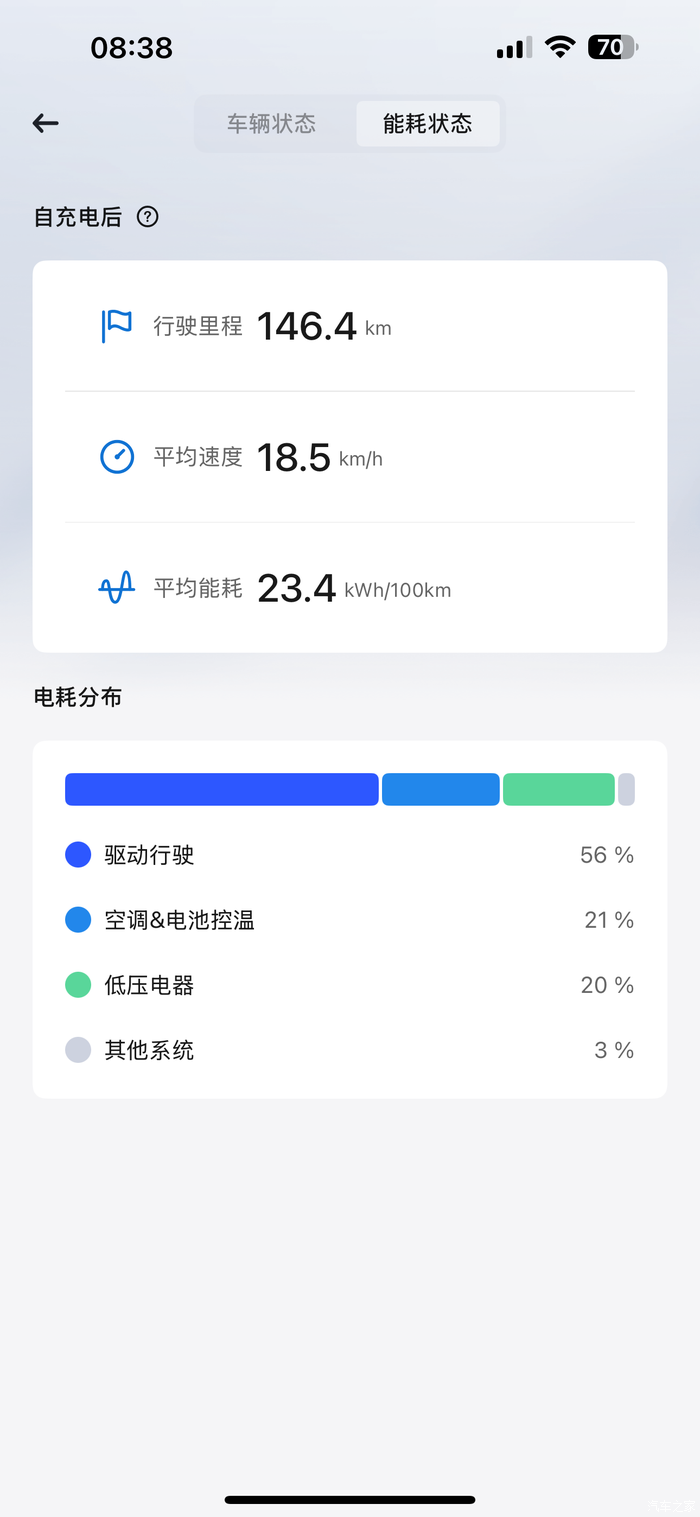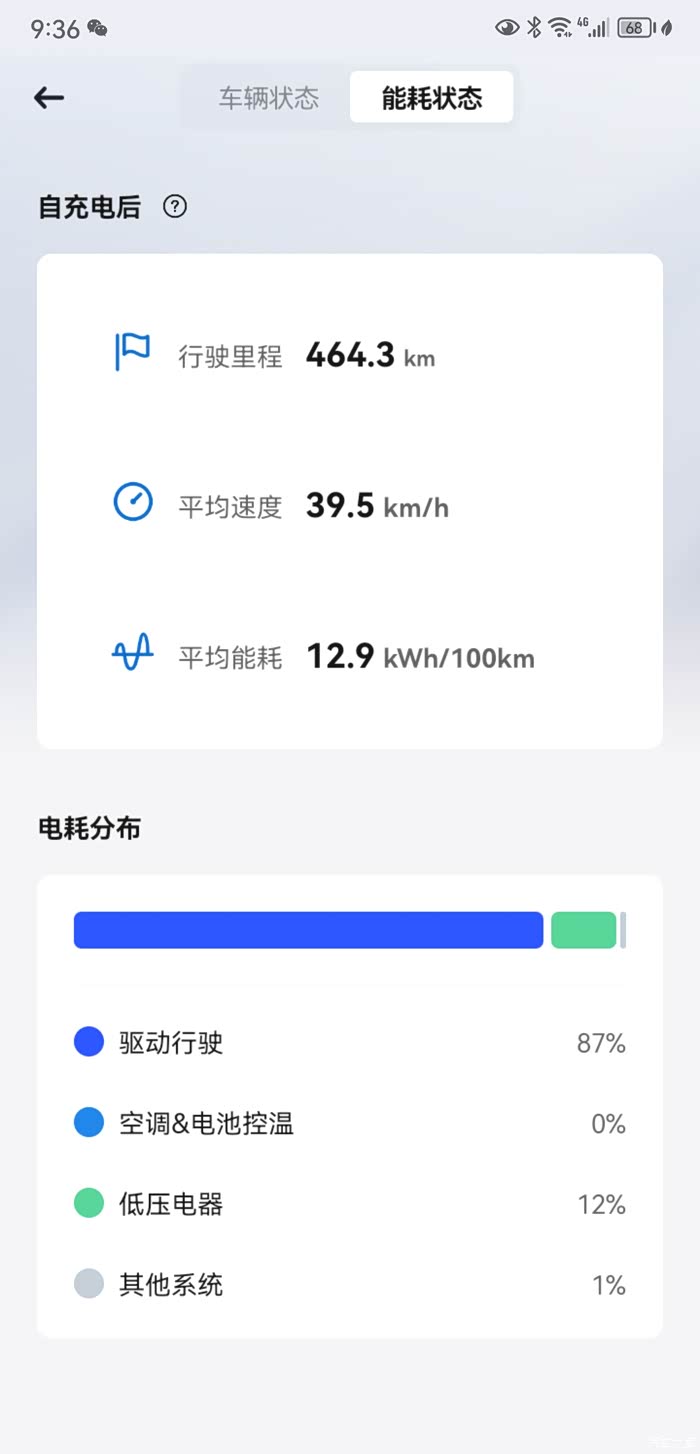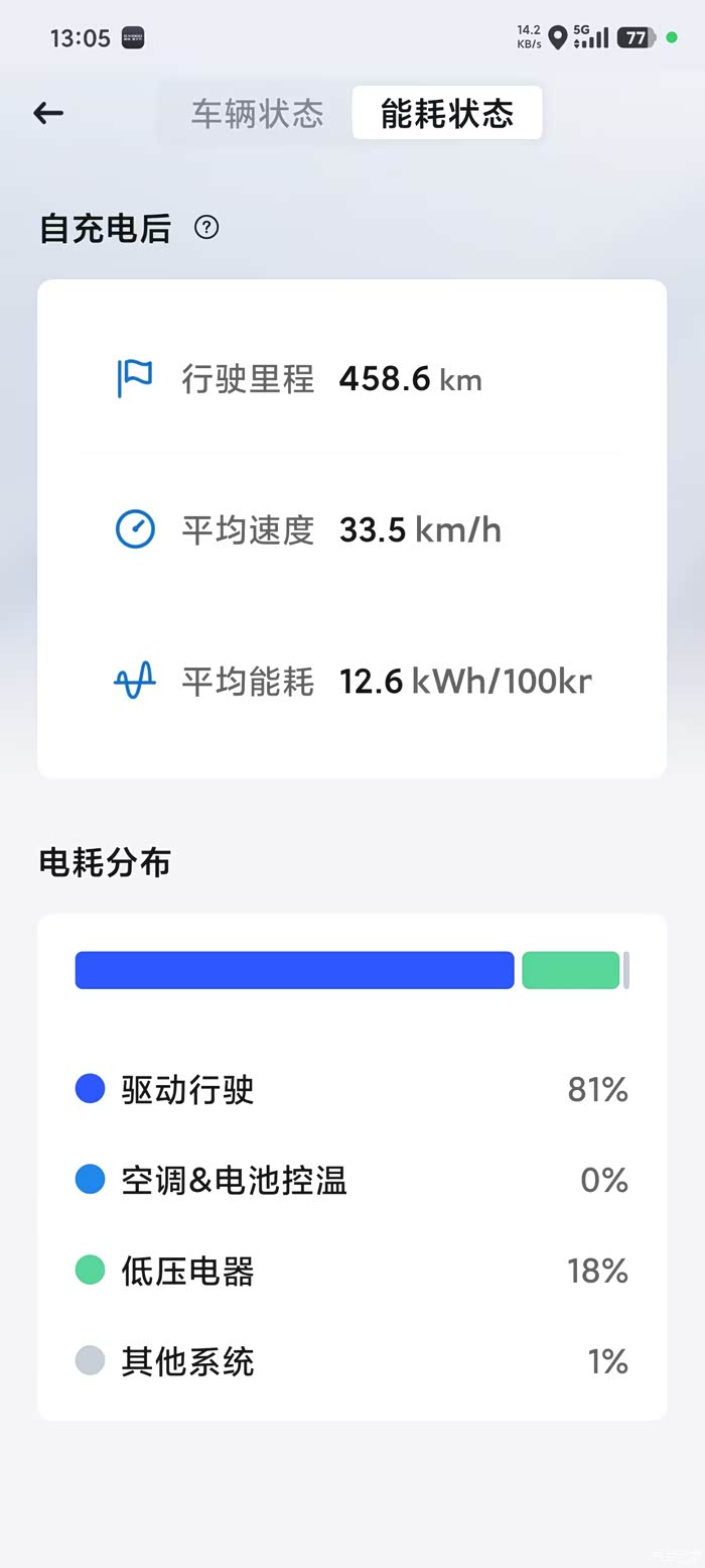 看你的图是空调整猛了;不猛开音响的话,低压电器用电占比主要受车速影响,比如低压电气固定2KW的功耗,行驶1km然后驻车一小时保持ready状态不退出(基本等效以1km/h的速度行驶1km),那低压电器耗电占比可以接近100%。