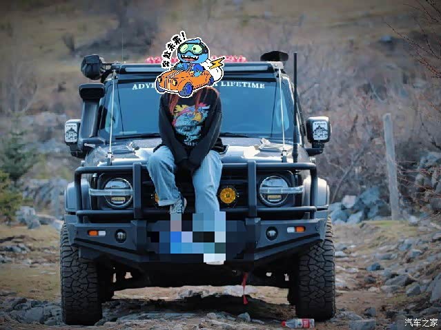 和同行的坦克停一起要高出一个身位,牛栏杠在这个时候就有作用啦 可以坐在上面拍照非常的出片