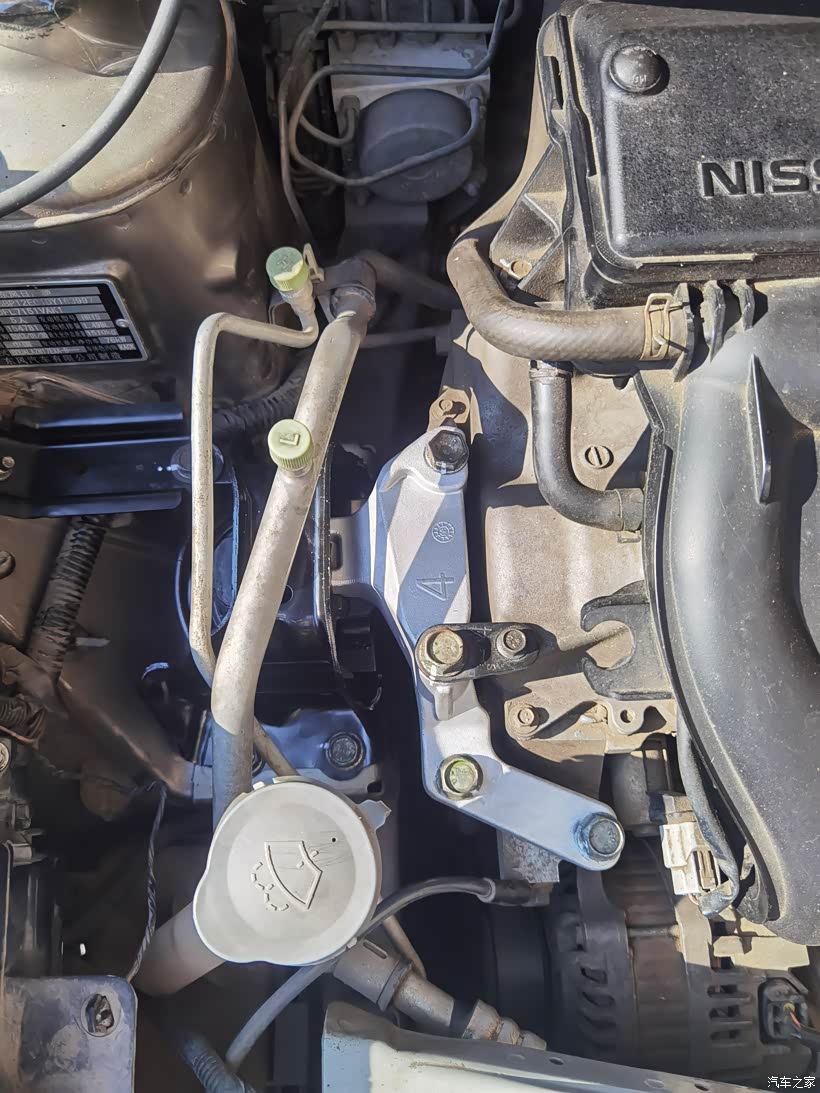 这里有个最关键的心得:绝对不能硬来,不要把空调管搞变形了的。还有如果孔位对不上,那就是发动机撑起的高度调调。通过微调千斤顶就能解决,感觉对了,所有螺丝孔都是顺顺滑滑地对齐,用手就能轻松地把螺丝带进去就没问题了。