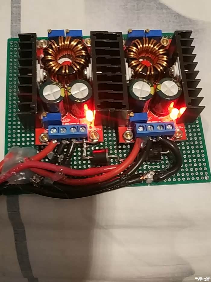 过去十年间我自驾游旅行时,在户外露营时电一直不够用,有些地方不能使用明火做饭烧水,原来使用的副电瓶(蓄电池)容量80AH,直接和主电瓶并联行车充电,使用长时间汽车继电器隔离主副电瓶,由车辆ACC电源控制通断(停车熄火断开)。缺点是分量重且电量下降太快,800W的电炒锅加1000瓦逆变器只能烧水30分钟(.水容量1.7升),不适合长时间放电。春节假期里我更换了磷酸铁锂电池一组,14.6V100AH有1.4度电,由于汽车发电机电压14V至14.5v之间且电压电流不稳定,磷酸铁锂电池会充电不满也影响寿命。根据磷酸铁锂电池的充电特点,充电要恒流恒压电势要高于额定电压值,我经过实验利用DC-DC大功率升压模块给磷酸铁锂电池充电,从主电瓶正极端拉一根5平方线,负极接车身,模块升压到15V充电电流20A。主副电瓶连接线之间用继电器隔离。