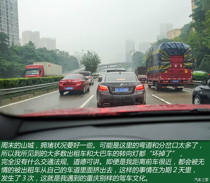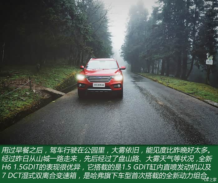 此次前往重庆,不巧遇到连续的大雾天气,出行以及游览观光都受到了一定的影响,在与全新哈弗H6 1.5 GDIT相处的几天里,无论是多恶劣的天气,我都可以从容应对。大雾天气中,H6 1.5 GDIT较高的坐姿能够提供良好的视野,前方堵车与否,相对轿车也能够提前观察到,可以尽早的更换路线。动力方面,全新的1.5 GDIT相对以往的1.5T发动机在性能上有较大的提升,在山城驾车,涡轮介入的迟早很重要,H6 1.5 GDIT发动机在1000rpm时,涡轮开始介入,1400rmp时即可爆发最大扭矩285N · m,匹配7DCT湿式双离合变速器,合理利用发动机在不同转速下的动力输出,兼顾动力输出与燃油经济性,实测油耗9L左右,多半是盘山路,少量的高速路。