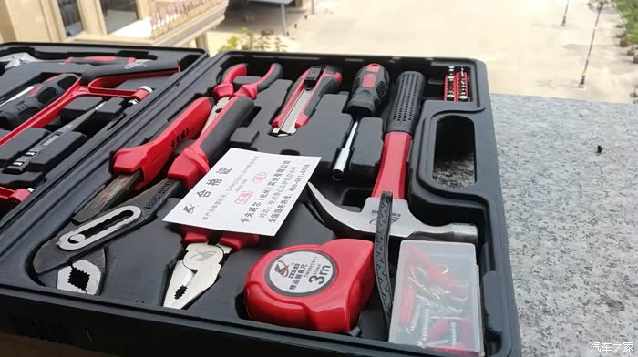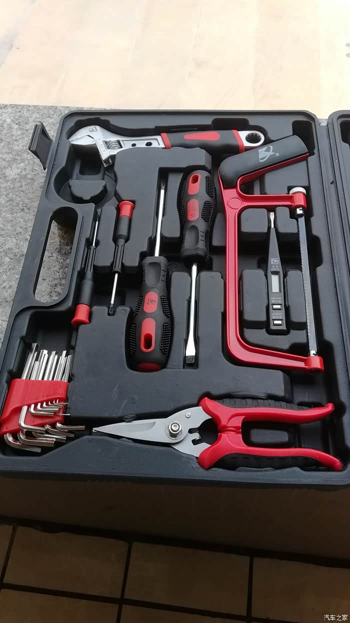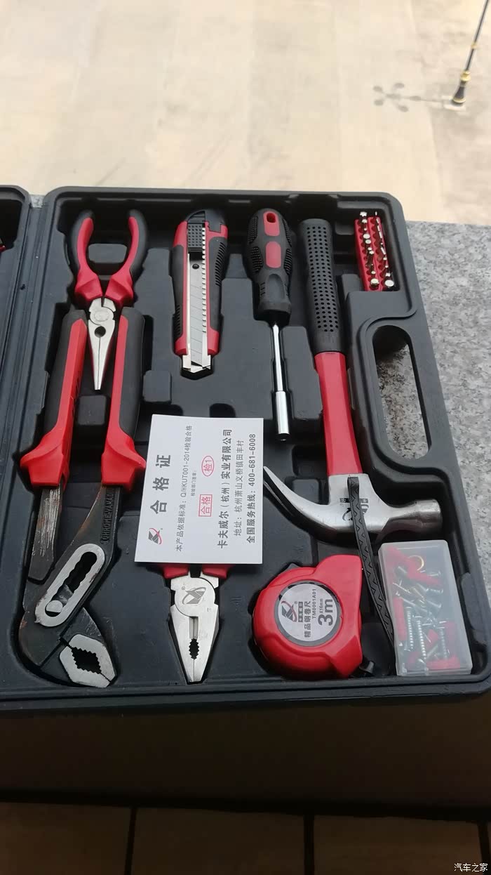 工具来自于车友送的礼品,感谢好友,也感谢汽车之家,汽车之家让我认识了这位好友。这套工具箱是去年收到的,工具属于家用组套工具,很适合家用,平时家庭生活当中偶尔会需要这些工具,家中备一套还是不错滴,卡夫威尔(Kraftwelle)是杭州贝特工具有限公司所属的著名五金工具品牌。贝特工具----自2002年创办以来,专业生产棘轮扳手、机械零件及各类组合工具的生产、开发,产品包括有棘轮扳手、家用组合工具、套筒扳手组、汽车工具、花园工具、电脑工具、女士工具、礼品类工具及吹塑制品等,以优良品质远销美洲、欧洲、东南亚等国家和地区。卡夫威尔地处杭州萧山钱塘江畔,杭州绕城高速义桥出口旁,距离杭州及萧山机场约十分钟车程,交通地理极为方便。企业拥有数控车床、数控铣床、加工中心、注塑机、数控吹塑机等精良的制造设备,并引进台湾棘轮扳手自动化生产理念及先进的质量测试流程,设备等级业界领先。具备丰富的生产经验、科学的管理及品质控制体系,拥有多个享有专利权的外观设计产品,获得中华人共和国国家知识产权局认证。