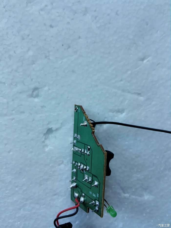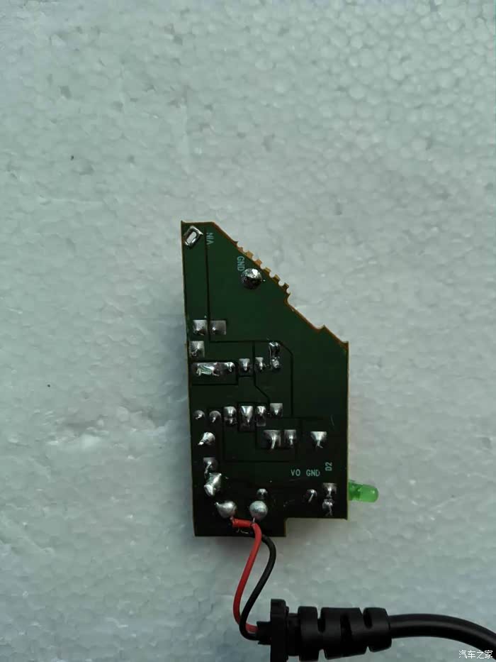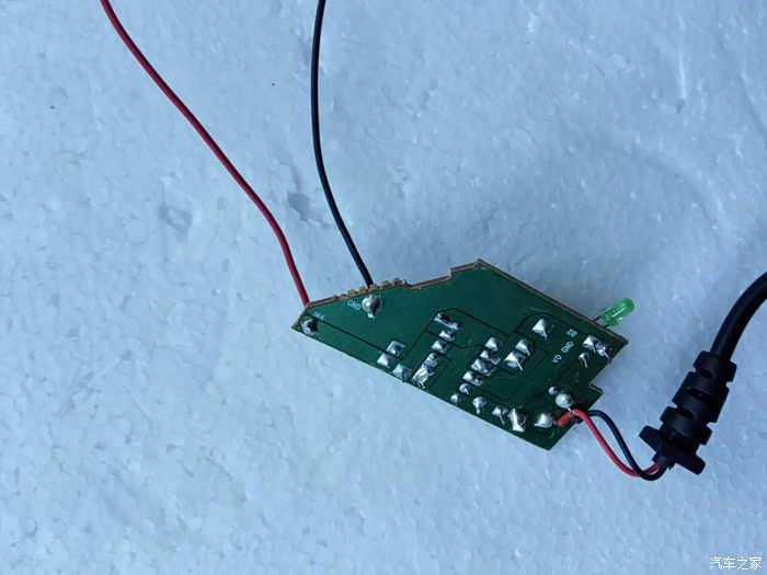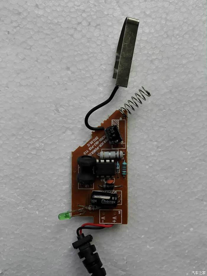 背面就是焊点,我们需要使用电烙铁将原来连接的弹簧和铁皮都焊掉重新接线,没有电烙铁的车友可以将行车记录仪的线拿到电器修理店让师傅帮忙焊接一下
