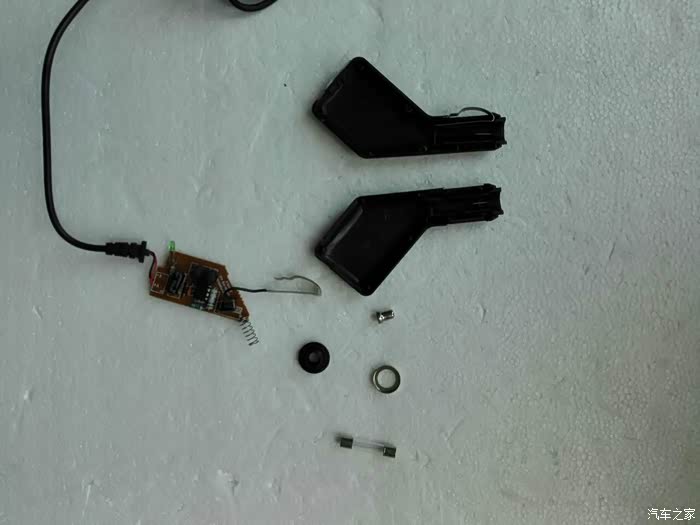 将点烟器供电线插座分解,看到内部构造