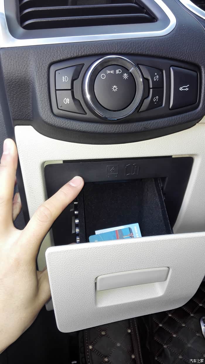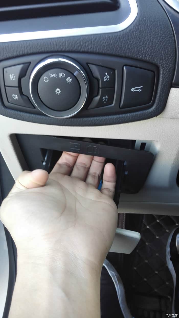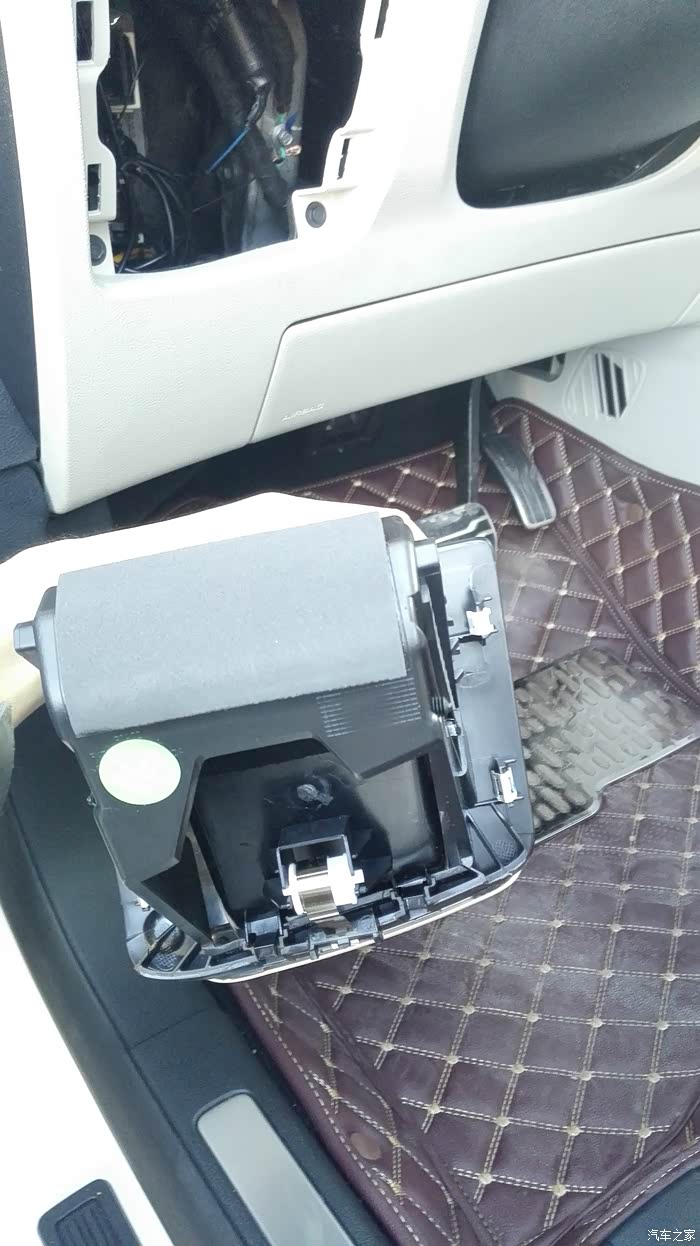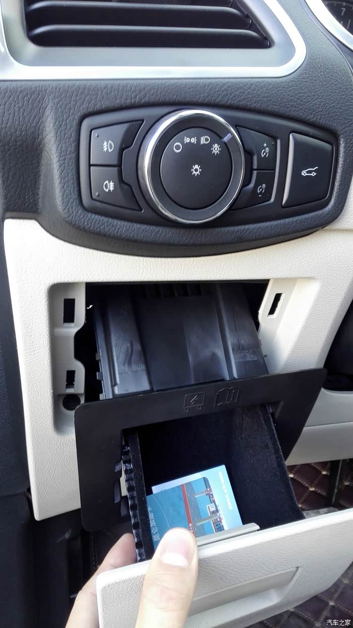 来到车里开始拆保险盒外部抽屉,拉出小抽屉