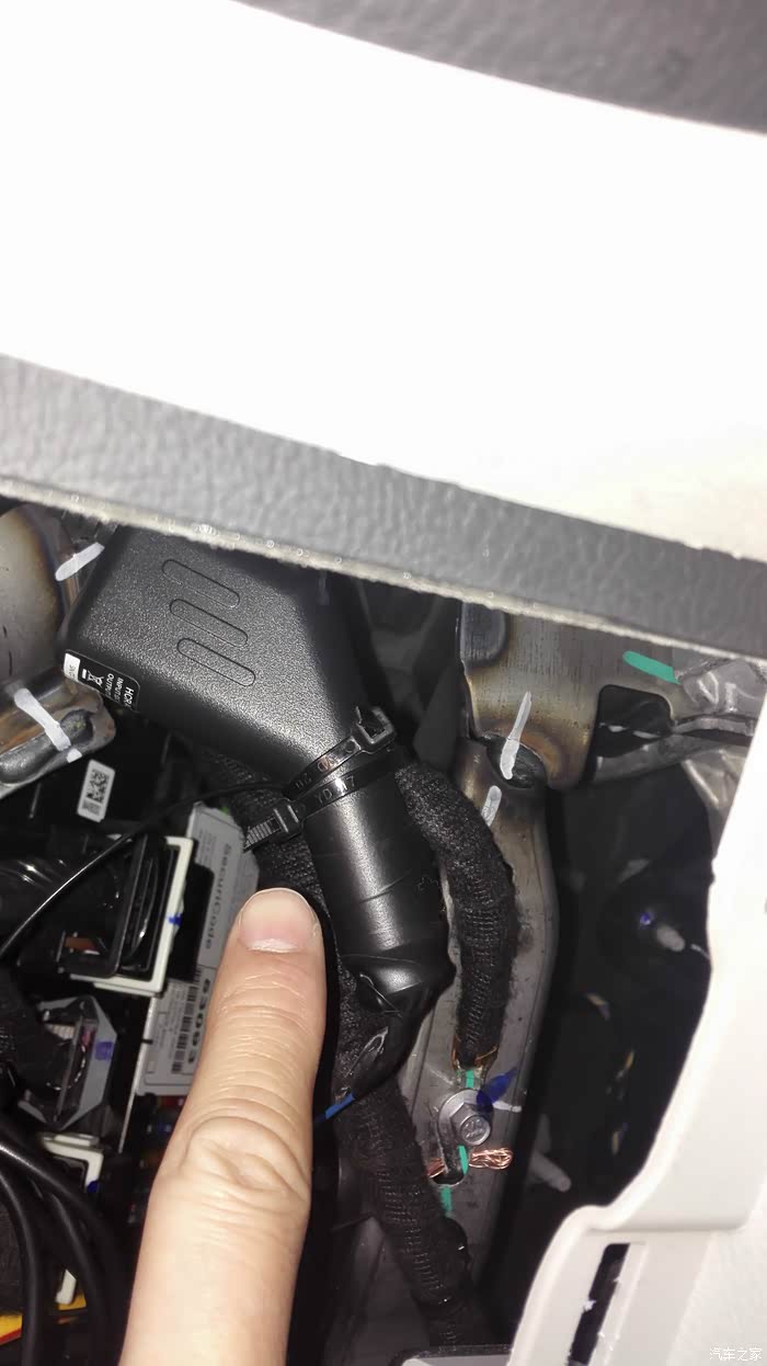 将点烟器的塑料头用扎带固定在保险盒里面