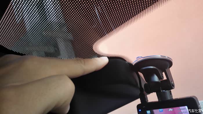 把挡风玻璃上的塑料盖子撬开一个缝隙,将行车记录仪压进去