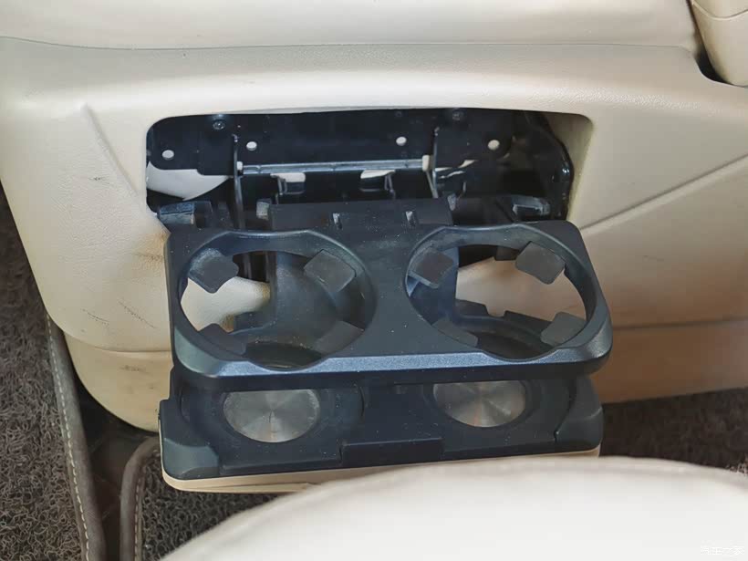 改装的陆尊座椅第二排右边座椅的侧面带有折叠式的杯架,用起来很方便,老GL8的原车座椅也有这个功能。