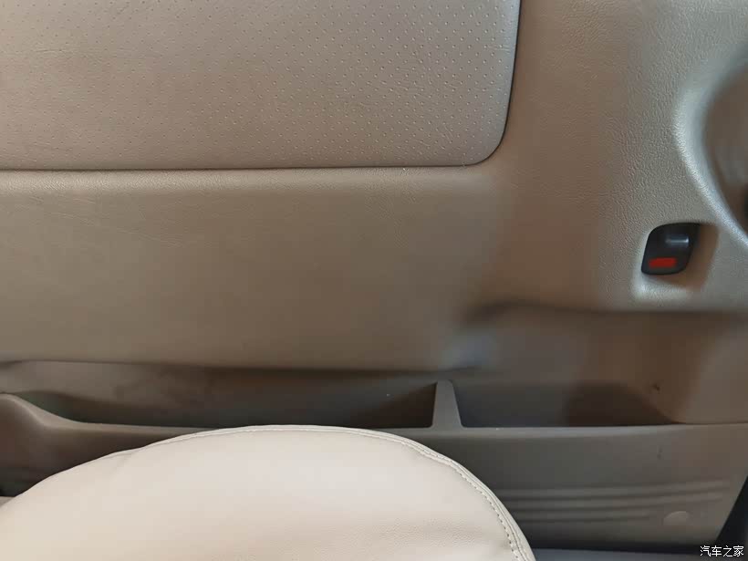 这辆车虽然设计老旧、技术老旧,但是用料却挺不错,连第三排侧面都实用了软性的搪塑工艺,中间还覆盖了一大块手感不错的打孔皮。