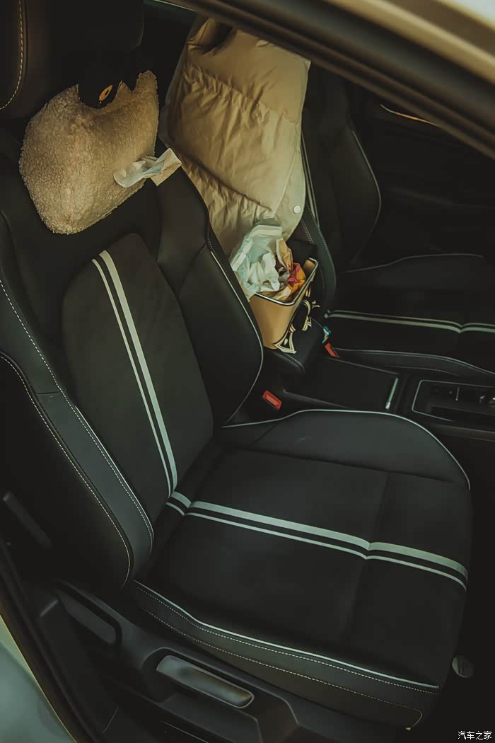 前排驾驶空间足够宽敞,对于体型较大的人来说,可能会感觉略显拥挤。用料方面虽然还是有很多硬塑料,但也有很大的改观,真皮的方向盘 ,翻毛皮混搭的座椅都还不错。