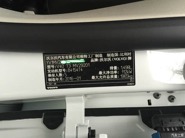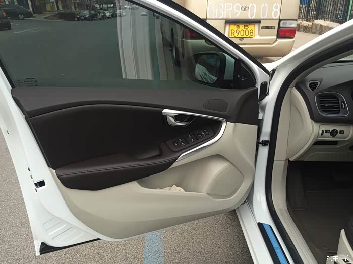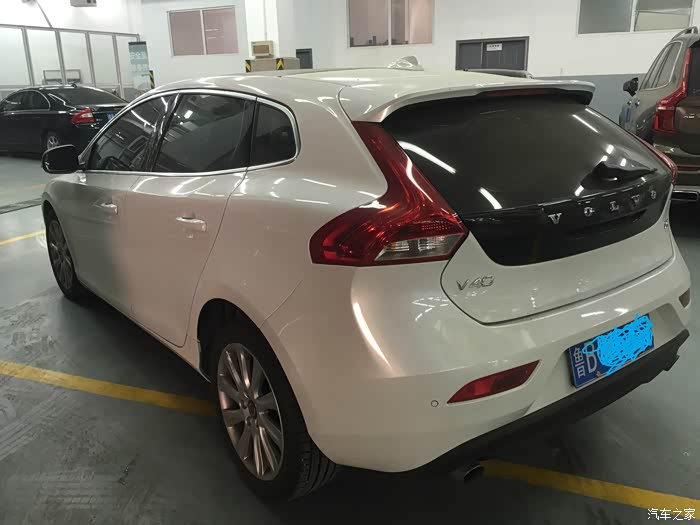 是不是有点杞人忧天),因此一直也有一搭无一搭的比较着,因家庭确实需要,定下来再买一辆,之前一直关注沃尔沃的XC60和V60,但车行还真没去过,也没试驾过。3月27日周日,目标V60,奔车行就去了,结果一看车,媳妇觉得V60大了,一个人上下班没用,而且生产日期都是在2014年的,前面的那个就行,然后又开始看40,接着又出去试驾了一圈,感觉还行,一商量,就定V40,然后谈价格,看车型,但车行可选的颜色和新车不多。下午到另一个车行作比较,然后就看到了这台新车,销售说是T3智雅的,有点小疑惑,之前的车型和网站上并没有这个型号啊,但配置等确实不一样,内饰也比较喜欢,外白,生产日期是2016年1月,就它了,后面的过程就是谈价格,定车了。3月30日交完全款车行办理临牌,31号下午,接着就把车提了,自己办手续去。 后面的几天就一直临牌开着,清明节假期,回老家跑了150多公里的高速,整体感觉还是很不错的,涡轮介入前,动力确实一般,涡轮介入后动力澎湃,推背感十足,还真需要好好适应呢。开到4月7日,上午去青岛车管所上牌(因为3月后国四排放上不了牌,因此很多都在3月上牌了,所以进入4月车很少),新车管所在城阳,早上过去也走了差不多一个小时才到,各种大堵和小堵,介绍一下上牌流程和费用,希望对后来人有帮助:先说一下:发票、车辆一致性证书(国产车可能是合格证)、关单、身份证、纳税证明副本、交强险等资料准备齐全,该复印的复印好了带着。第一步:进门右转,右手边有排房子,交上10元,拓个大架子号;第二步:然后向前接着左转一直开,到头,右前方有个平房,交80元,是喷砂的,也很简单;接着调回头来在刚才的左手边,是并列四排的验车照相流水线,排队开进去,等着警察给验车照相,拿着打印出来的验车表,开出去接着左转再左转;第三步:就是刚才验车线的北面,同一个建筑单体,北门进去后带着拓印的大架子号等,按照排号到前面拿出照片,做行车证用,办好后带着一张纸,有个序列号,出门到下一个地方;第四步:出门在右前方有个大楼,是车管所的主楼,从西门进去,先选号,用到那个序列号,网上已经自选号的应该简单一些。然后向前走进入最后的办事大厅;第五步抽号等着叫号办理就可以,缴费125元,给个单子去领车牌,行车证办的也很快,办好后到1号和2号窗口办理环保标志,然后走人;第六步:最后回到刚才一进门拓号的那排房子最右边,领取车牌,全程完毕,共花费215元,早上接近9点到的,10点多全部办完,很简单。进口车和国产车差不多,现在都少了进口商检换证那个环节,省100,还省了至少一周的时间。 说说用车的感受,到目前跑了1500了,整体是非常满意的。动力就是前面说的那样,涡轮介不介入差别很大,但感觉1.5T的够用,即使上高速也没问题;平稳性方面感觉很扎实,高速120多没有任何飘的感觉,非常有信心;平顺性方面相对不错,当然与CVT的不能比,但对档位的转换没有明显感觉;空间方面够用,毕竟平常也没有很多人坐,舒适性配置较多也比较好,遇上个坑洼颠簸在承受范围内;电子配置方面比较全面,自动启停用的也还不错,就是自动泊车没用过,暂无法评价;并线辅助真心不错,盲区一旦有车或亮红灯,要是此时打转向红灯会一直闪;安全配置就不用说了,虽然没有自动刹车行人气囊等配置,但安全性方面依然是最好的;油耗方面目前显示8.4,估计实际与这个差别不会太大,路况基本在堵和不堵之间。 总体来说,对这个车的价位和性能都比较满意,值得推荐。 洋洋洒洒说了这么多,希望对大家有点帮助,不对的地方请海涵,上照片:第一部分:外观