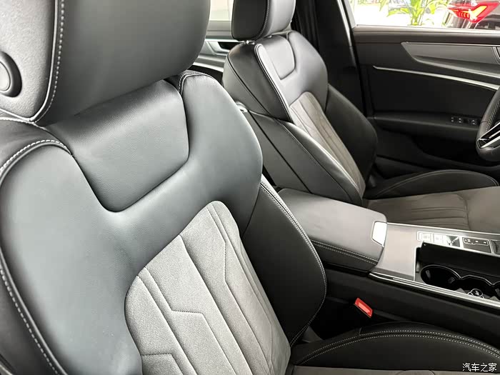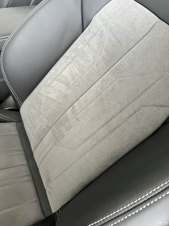 缓缓关上车门,仿佛进入了一个静谧的私人空间。内饰的选材确实下功夫了,细腻的翻毛皮座椅,触感柔软且富有弹性,座椅的包裹性和支撑性非常好,长时间驾驶应该会很舒服。座椅上的缝线精致工整,显着工艺的精湛。