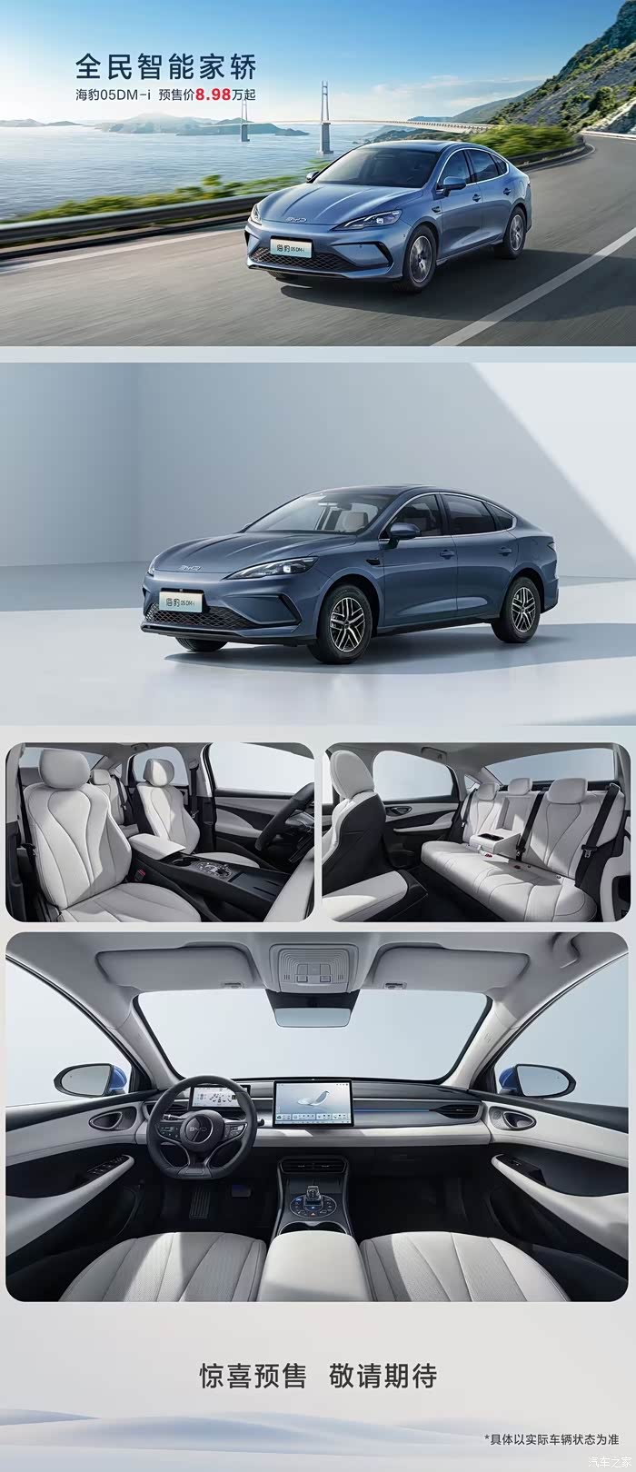 比亚迪第五代DM技术再度赋能,开启国民家轿新时代。8.98万元起海豹05DM-i 正式预售了,家族化外观内饰魔改的还不错。