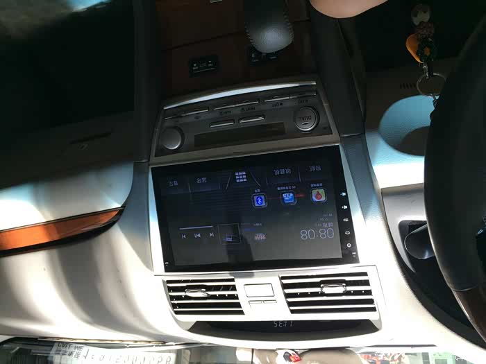 这次把导航介绍给大家,非广告,某宝买的,1800+后视+安装费100,感觉还不错,大家看下图感觉不错看到MODE键了吗?我通过导航把这个键改成接听电话键,直接在导航里面设置就可以,接听电话是点一下接听,再点一下挂机,很方便,手都不用离开方向盘了,不错内饰高档好看正面图带太阳眼镜的小鹿后排空间也很大,很舒服钥匙认证,自己改的,60元左右开机中,刚开始时丰田的标志,很大一个主页面导航就有时候准有时候不准,不知道其他的导航会不会~不过可以去接网卡,用百度地图,听说会准很多,没试过,不知道速度与激情7.白天看不清楚,晚上画面很好很清晰外面看里面,很豪华不错吧...