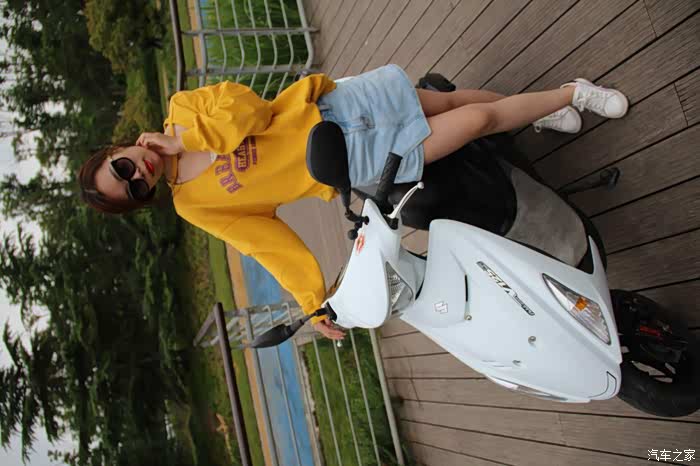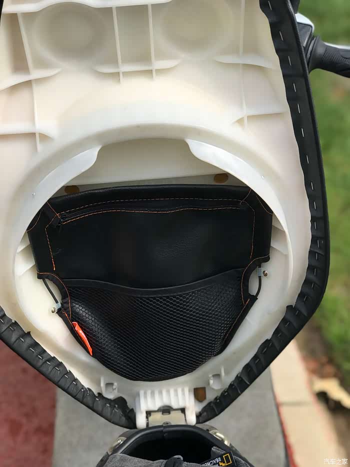 储物空间方便,杂物、饮料随便往前面一扔,脚可以舒服的蹬在踏板上,我鄙视所有脚不能蹬踏板和前储物槽有开关空间又小的踏板车。