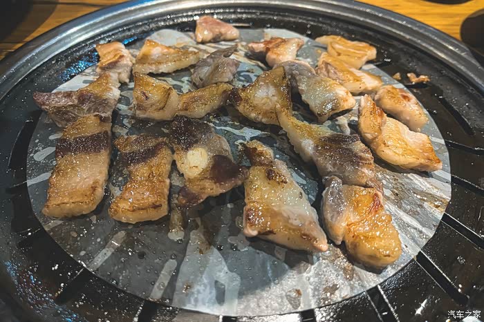 当第一块烤肉烤得恰到好处时,我们迫不及待地夹起品尝。